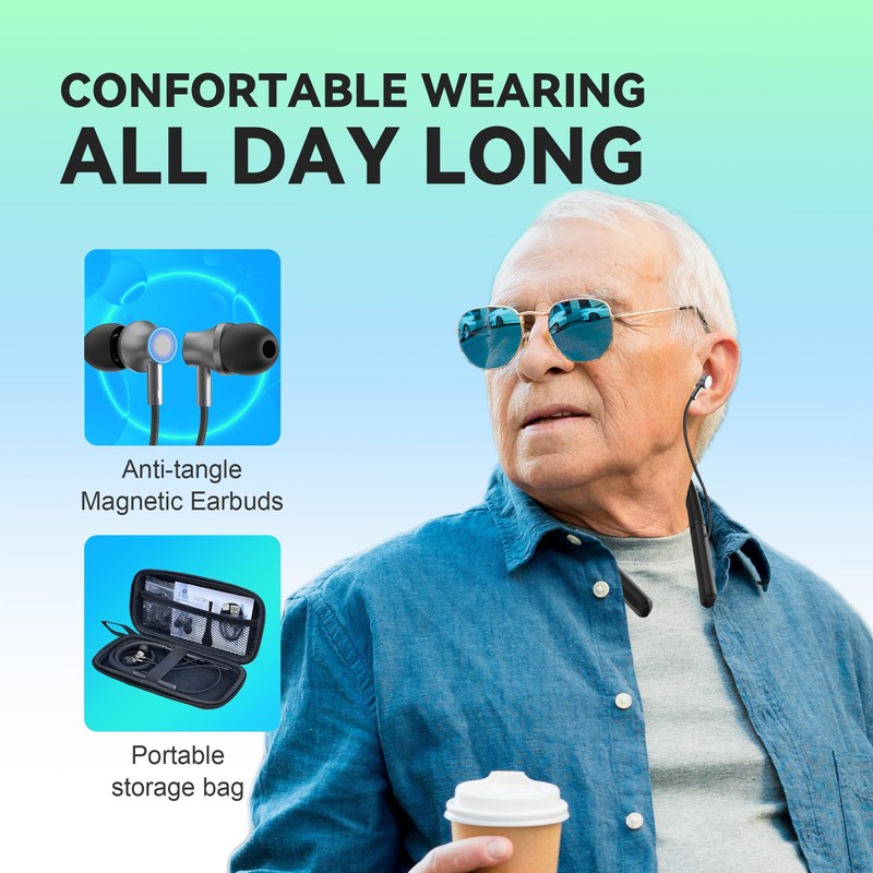 DIGGINGSOUND Neckband Hearing Aids for Seniors, Rechargeable Hearing Aid Bluetooth Headphones with Noise Cancelling