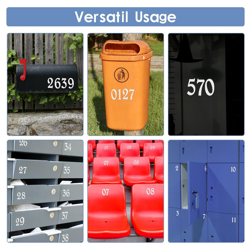• Include 2x(0,1,1,2,3,4,5,6,7,8,9), 6" tall reflective self- adhesive vinyl.
