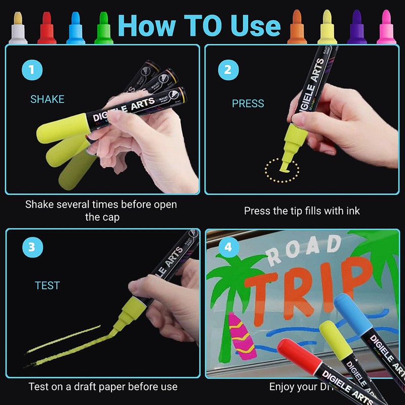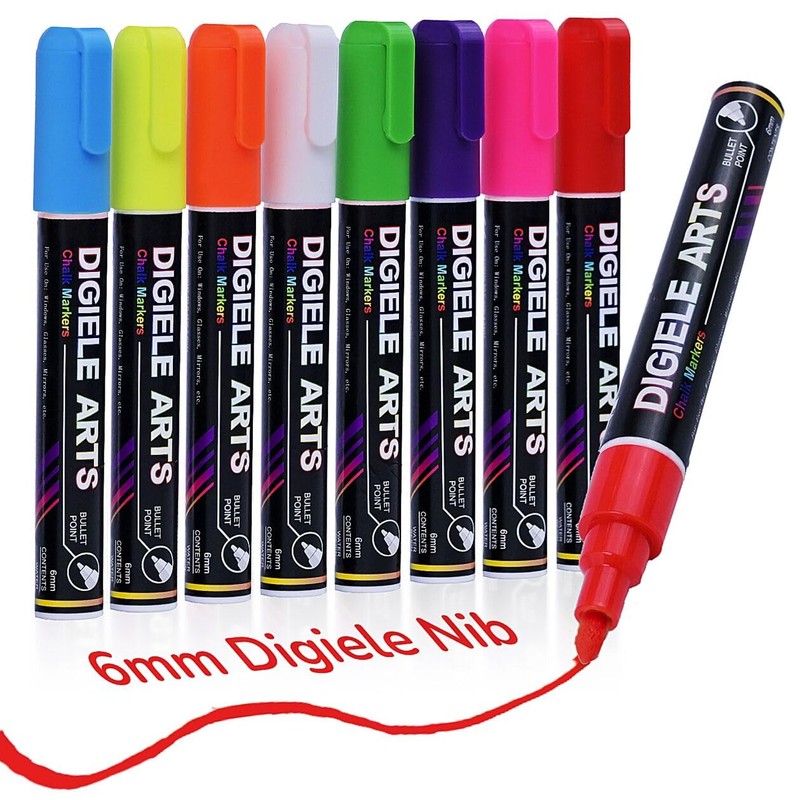 DIGIELE Chalk Pens for Windows, Glass and Mirrors, 8 Colours Chalk Pen, 6 mm ...