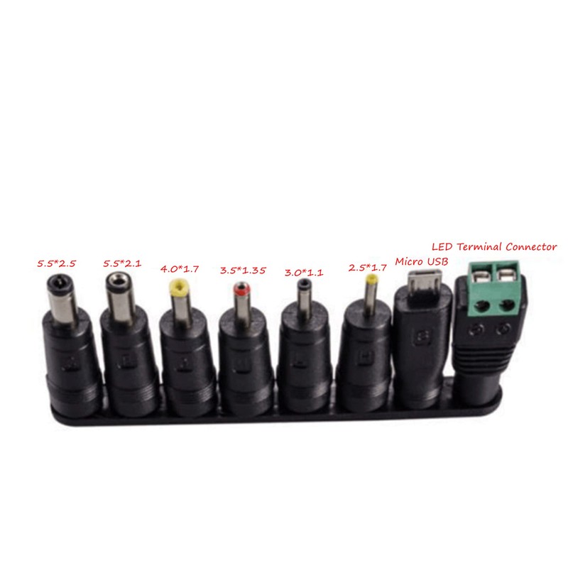 - [Universal DC Plug]5.5*2.1mm Polarity:positive (+) center,DC cable Line Length:120cm(47.24inch),in order to meet your devices more requirements,it contains free 8 different sizes of interchangeable plug.📧Note:Since there are many kinds of adapter output plug,If you can't confirm what plug is needed for the device,please contact us first.