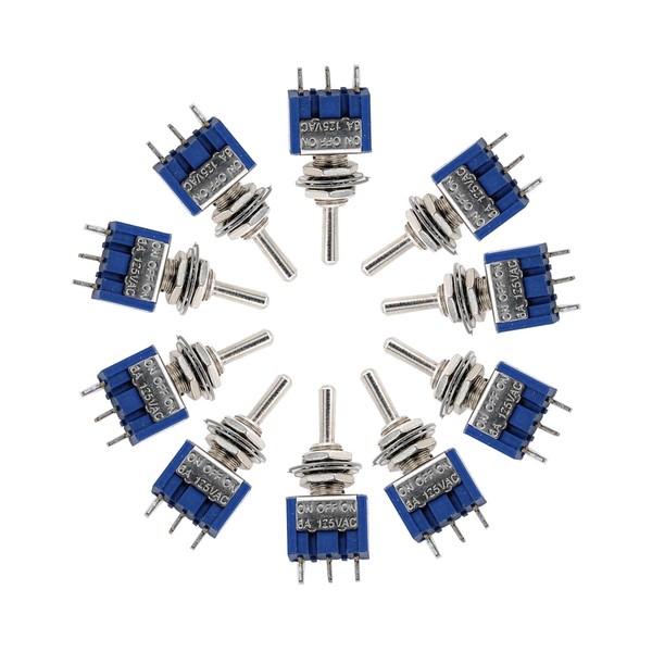 DIGISHUO MTS-103 Mini Toggle Switch 6A 125V AC Toggle Switch 3-Pin 3-Position ON/Off/ON Miniature Toggle Switch (10pcs MTS-103)