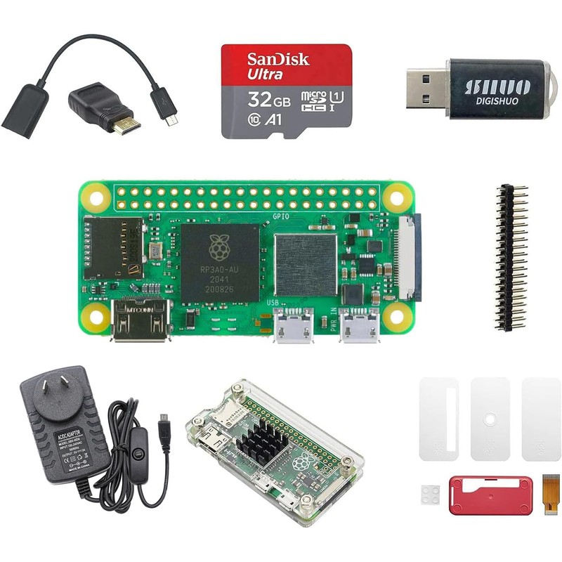 DIGISHUO Raspberry Pi Zero 2W Complete Kit 1GHz 512M Wtih Two Case 32G Sandisk Card Mini HDMI&Micro USB&GPIO Header (Raspberry Pi Zero 2W 9 in 1 Kit)