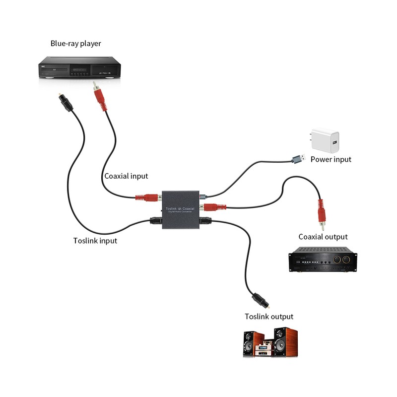 Bi-directional Audio Converter: Supports two-way conversion: Coaxial to Toslink or Toslink to Coaxial.