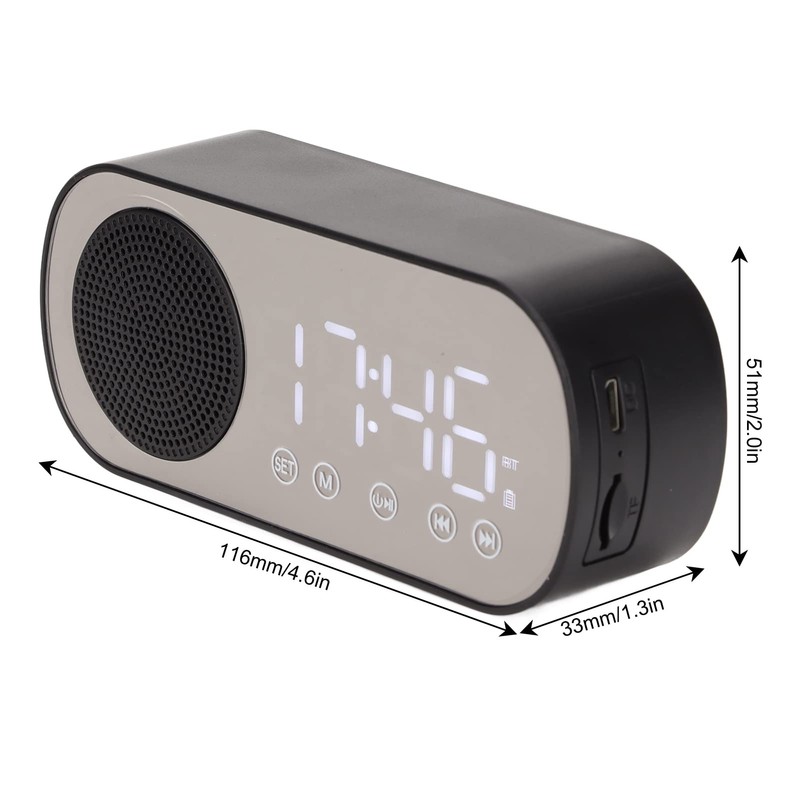 5. LARGE LED SCREEN: The digital alarm clock displayed by LED, the time is also clear at a glance. The screen of the alarm clock speaker can also be used as a mirror.