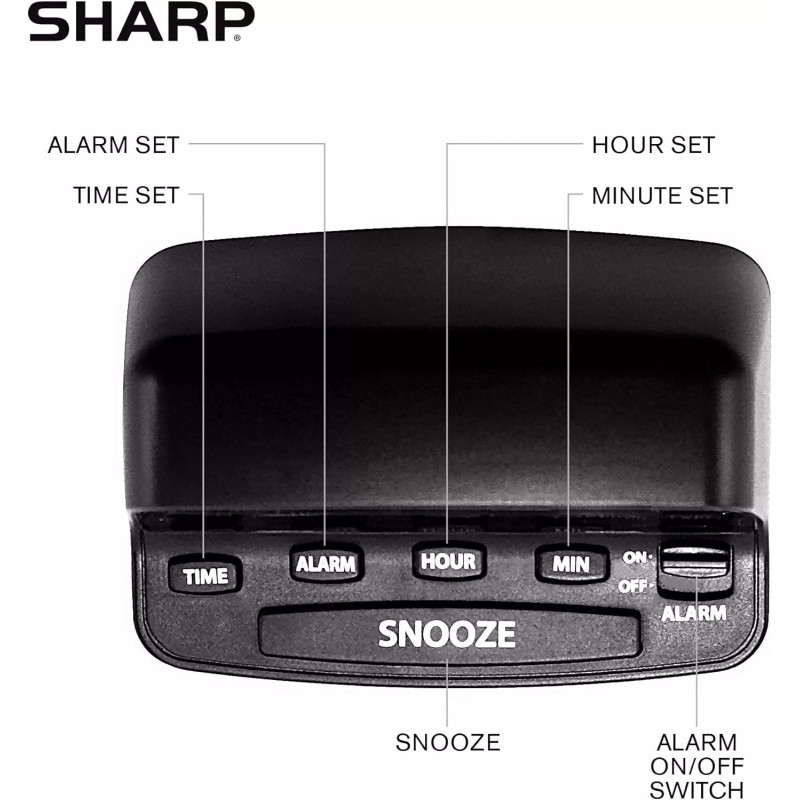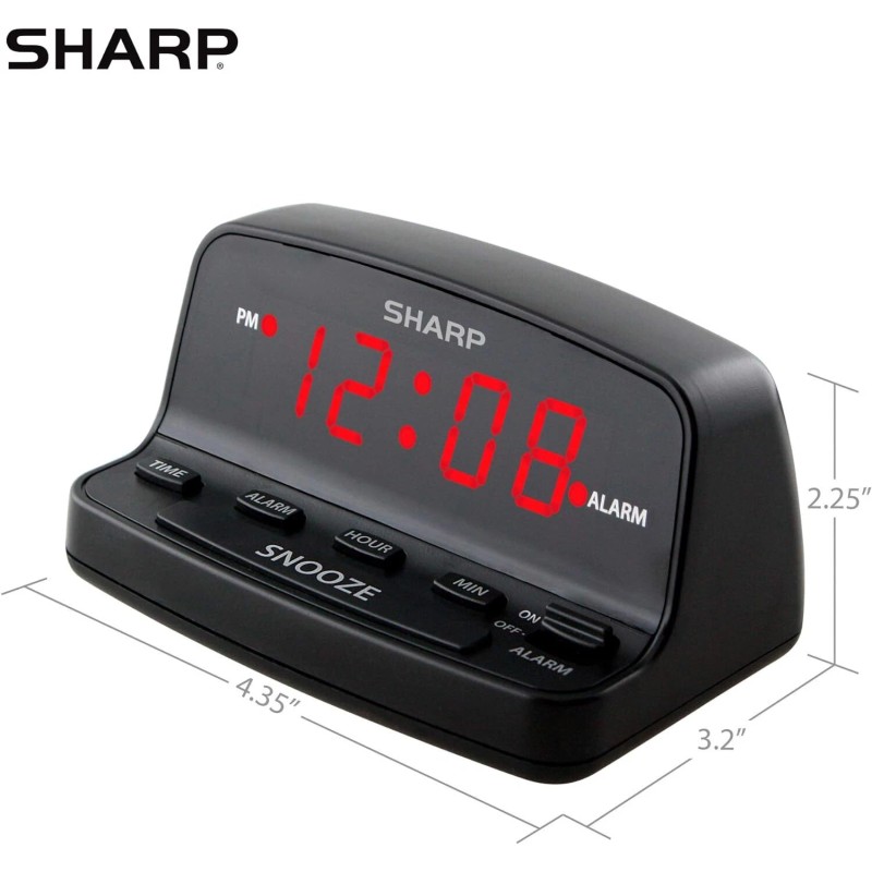 SHARP Digital Alarm Clock with Keyboard Style Controls, Battery Back-up, Easy to Use with Simple Operation, Black Case with Red LED Display