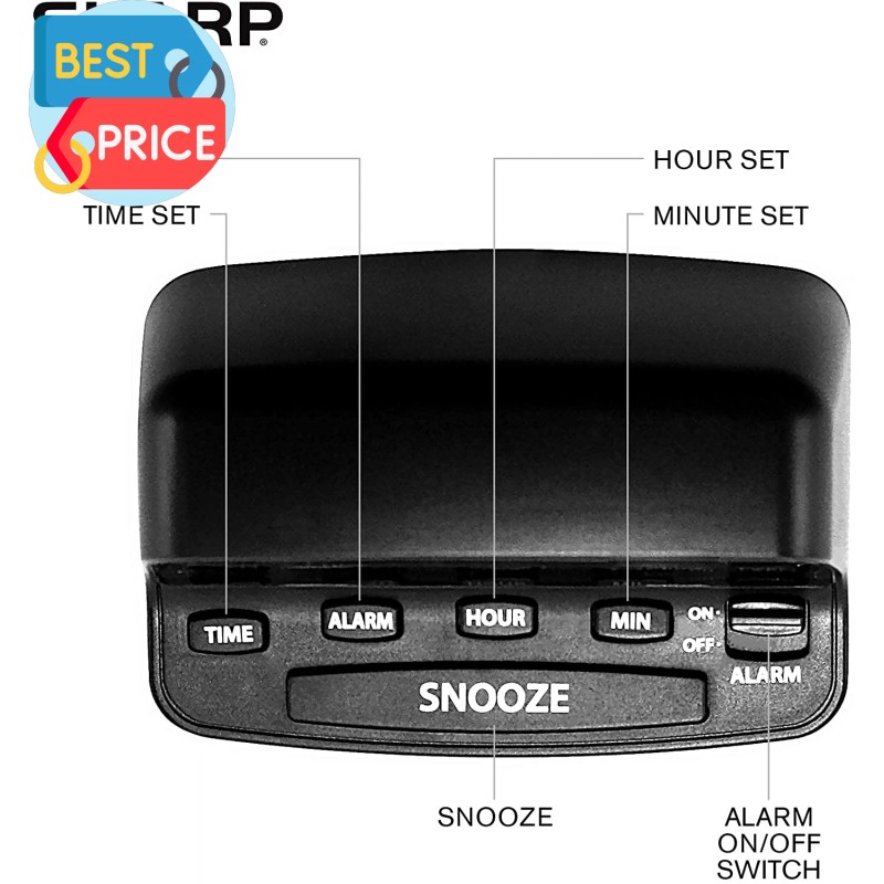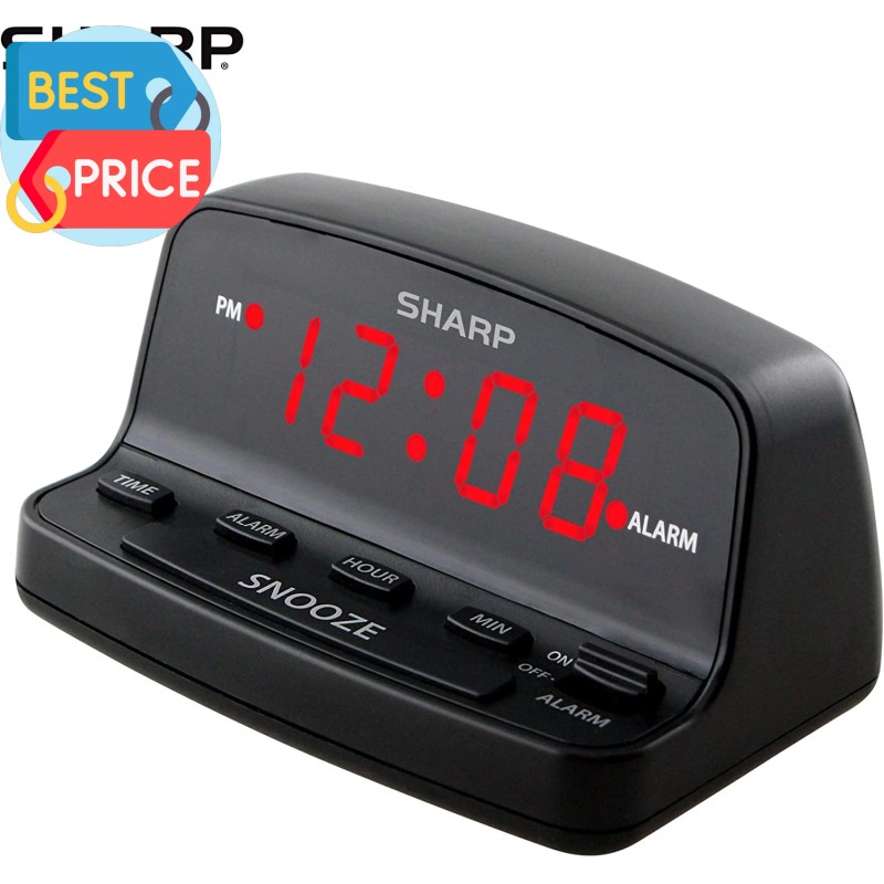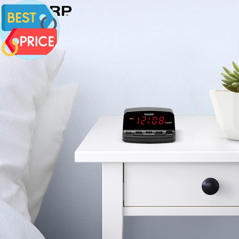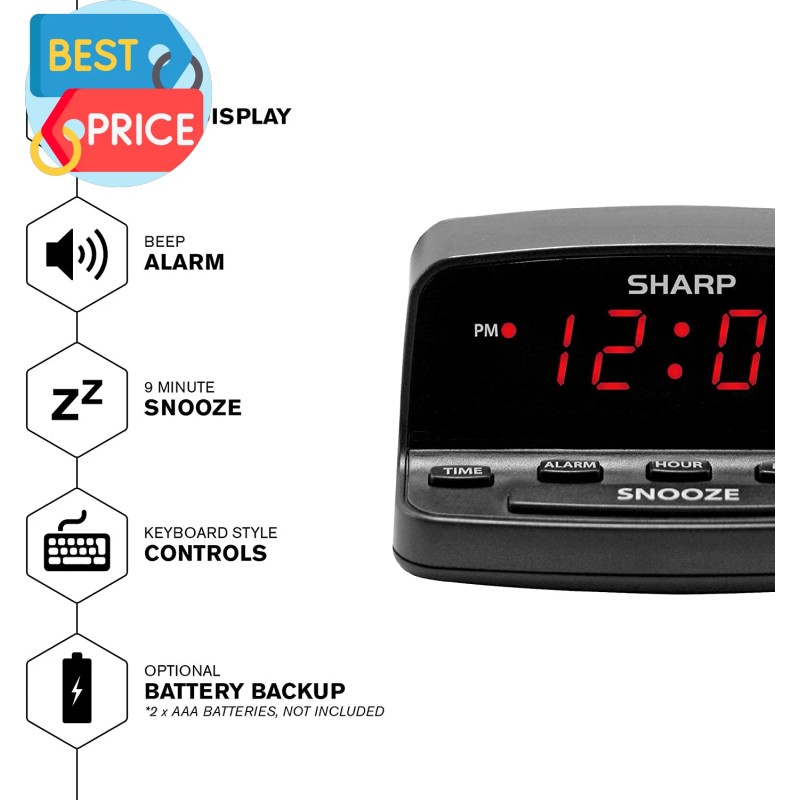 SHARP Digital Alarm Clock with Keyboard Style Controls, Battery Back-up, Easy to Use with Simple Operation, Black Case with Red LED Display