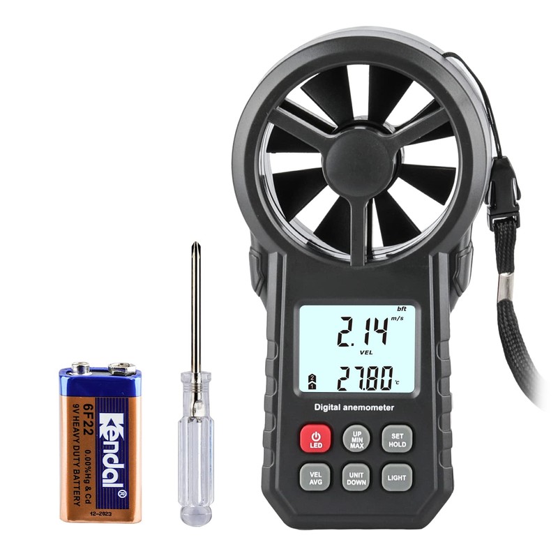 - đ©ăUPGRADED ANEMOMETERăâ:Gray Anemometer measures not only air velocity/ wind speed, air volume, but also relative humidity, temperature, dew point, and wet bulb temperature. Built-in high-precision sensor and sensitivity fans for you to get a more accurate measurement. The digital wind speed meter is perfect for the weather station, HVAC system testing, shooting, boat sailing, surfing, hiking, and other outdoor activities.