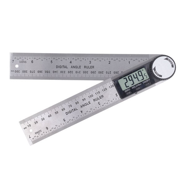 1、EASY TO READ: The digital LCD screen makes the reading clear and intuitive, and the laser etched scale is clear and not easy to wear. 2、360° MEASUREMENT: The hinge mechanism on this angle ruler allows for 360° internal measurement and reverse angle measurement, ensuring comprehensive measuring capabilities. 3、MULTI FUNCTION: Press the hold button to retain the measured data, and use the REV function button to flip the screen for easy reading when measuring larger angles, more convenient. 4、STURDY ALUMINUM ALLOY: Constructed from sturdy aluminum alloy, this angle finder ruler is built to withstand heavy use and provide long lasting performance. 5、WIDE APPLICATION: This digital protractor is suitable for construction, drafting, carpentry, masonry, machinery, decoration, home furniture, and more, ideal for precise measuring and marking.