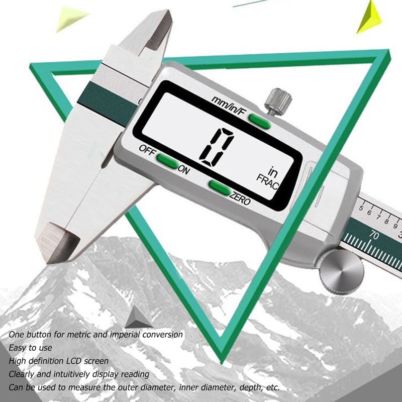 1、High Precise: The measuring range is 0 to 150 mm, with high precise, can be used to measure the outer diameter, inner diameter, depth, etc. 2、One Button Conversion: One button for metric and imperial conversion, easy to use, meeting different reading requirements. 3、LCD Display: Designed with high definition LCD screen, this digital caliper displays the reading clearly and intuitively. 4、Stainless Steel Made: Made of excellent stainless steel, hard wearing, rust and corrosion resistance, sturdy and stable, not easy to bend. 5、Storage Box: Compact in size, light in weight, comes with a storage box, this digital vernier caliper is very convenient to carry around.