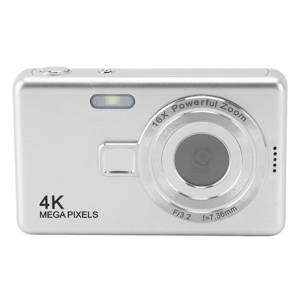 Digital Camera, 12MP 1080P, 16X Digital Zoom, Auto Focus, Vedio Camera with 2.4" Screen, Compact Anti-Shake Vlogging Camera for Students and Kids (Silver)