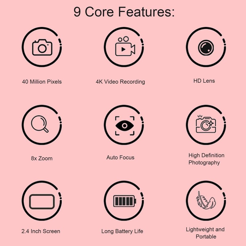- 8x digital zoom auto focus: Equipped with an 8x digital zoom and AF autofocus, the camera offers fast and stable focus on subjects such as people and objects. The 2.4 inch screen provides a clear view, so you can easily see your photos and videos on the camera itself. The design of the screen has been taken to protect the eyes so that you can enjoy your vision while enjoying it.