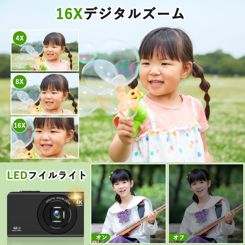 - 【4K Ultra High Definition & 68 Megapixels & Fill Light】This 68 Megapixel and 4K Resolution digital camera provides excellent image quality for both social media and home recording. What's more, the built-in fill light can be turned on and off according to the scene, not only show the color more realistic and accurate, but also provide users with a more delicate and smooth visual experience. Whether you're shooting dynamic video or taking still photos, it will bring you great visual effect