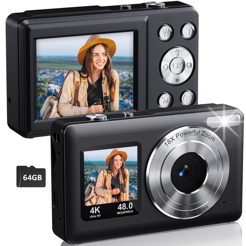 Digital Camera Dual Screen Kids Camera 4K 48MP with Autofocus & 16X Zoom, Internal Battery, 64GB SD Card Included | Portable Selfie Camera for Teens Children, Starter Vlogging Cameras