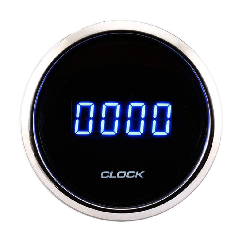 MOTOR METER RACING MGS Series 52mm 2-1/16" Digital Clock Gauge 0~24 Hour Format Black Dial Blue LED Display 12/24 Volt Waterproof