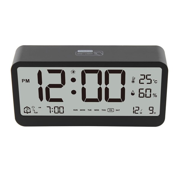 Digital Clock, Table Clock, Alarm Clock, Calendar, Temperature, Humidity Meter, Easy to Read Large Screen Display, Alarm, Snooze Function, Stylish (Black)