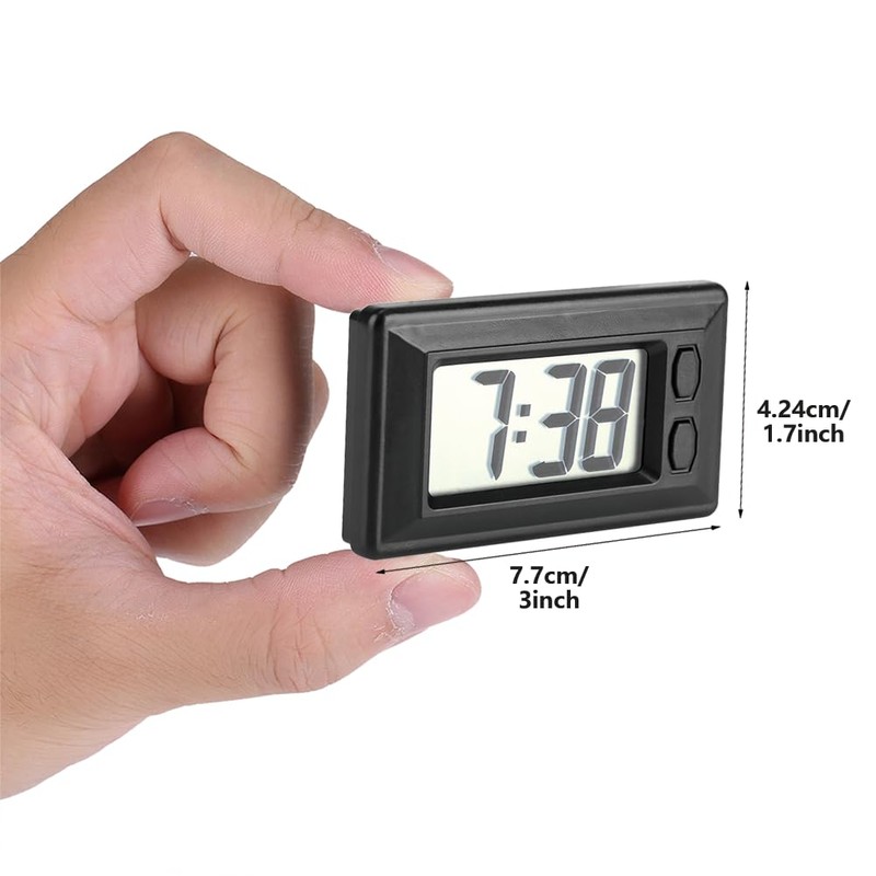 3. Digital clock comes with adhesive pad to stick it to your dashboard.