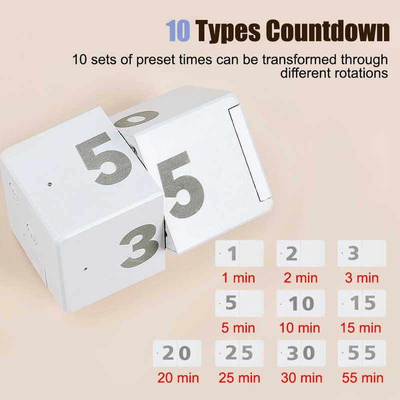 - Free conversion, time selection: 4 dials can be converted into 10 sets of digital combination time, the operation is simple and interesting, suitable for use in different scenarios. 10 built-in preset time sets, including 1, 2, 3, 5, 10, 15, 20, 25, 30, 55 minutes, easy switching by flipping.