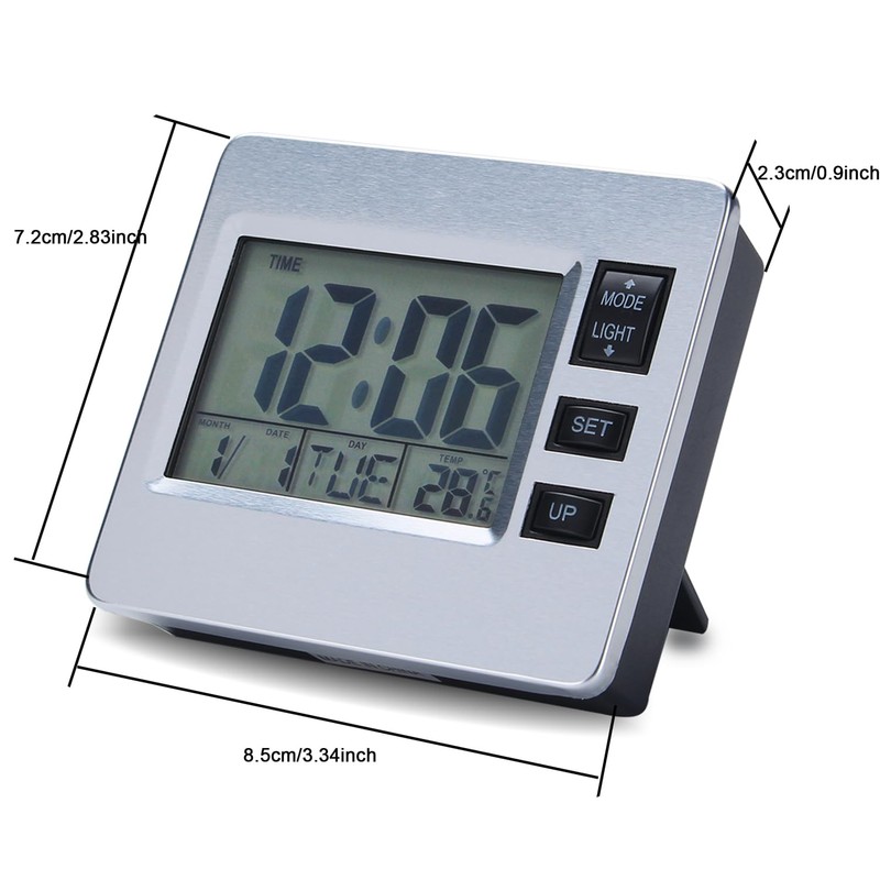 - [Function]: 12- & 24-hour Clock, Calendar ( date, week, year--2000 to 2099 ), Alarm and Snooze, Countdown timer, Indoor Temperature.