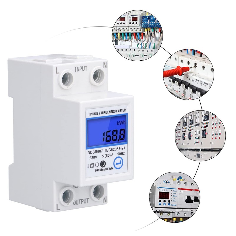 Digital Electricity Meter LCD Digital Electricity Meter Single Phase DIN Rail Installation Electric Consumption Monitor 5 (80) A