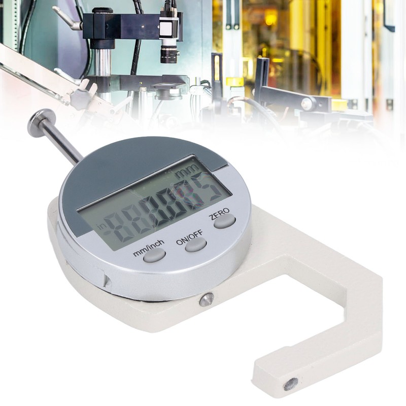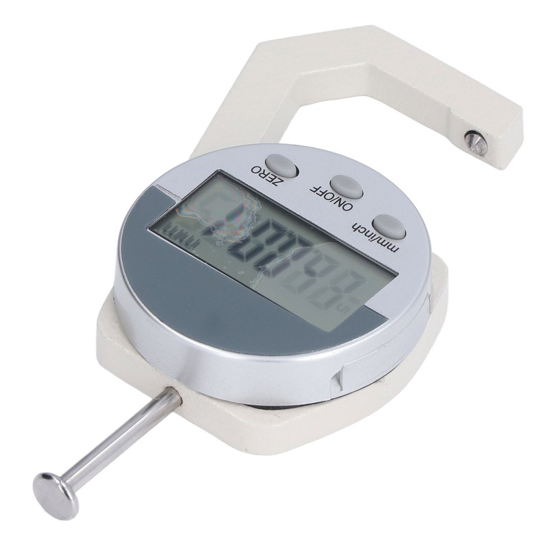 1、Multiple Functions: Thickness gauge can be cleared at any position to facilitate micro difference measurement. With the switch key, you can choose to automatically cut off the power. 2、Product Parameters: Resolution: 0.01MM/0.001in, measuring range: 0‑25.4MM/1in, working temperature: 0℃‑40℃, storage and transportation temperature: ‑20℃‑70℃. 3、Measurement System Conversion Key: When different formats are required to display, you can press mm/in to select. 4、Battery Cover Installation Method: Remove the battery cover, replace with a new battery (positive side facing up, battery not inculded), and then install the battery cover. 5、Use Method: Press the measuring button to make the upper measuring head have enough distance from the lower measuring head. Place the workpiece to be side on the lower measuring head and loosen the measuring button to press the upper measuring head tightly on the workpiece, and then take a reading. 6、Safety Tips: When using, it should be prevented from hitting and falling to avoid loss of accuracy. Keep it clean and avoid the penetration of water and other liquid substances, so as not to affect normal use. No voltage can be applied to any part, do not use pen lettering, so as not to damage the electronic circuit.
