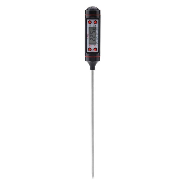 Stainless steel probe with rapid temperature measurement function, high accuracy and you can know the food temperature quickly.  LCD screen display the measurement result, easy to read. You can use it to test meats, jams, and bakes while making sure you have the perfect deep fryer temperature. Easy to use, just put the probe on the object you want to measure and get an accurate reading in seconds. The probe is packaged in a convenient transparent plastic tube with a hanging rope for easy storage. Suitable for BBQ use, measure temperature of baby milk, measure bath temperature and all temperature measuring.