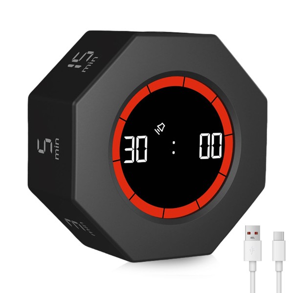 Digital Gravity Flip Timer 1/3/5/15/30/60/90 Minutes Countdown Timer, Pomodoro Timer Cube Cube, Hexagon Flip Clock Visual Timer, for Work, ADHD, Office, Task, Meeting, Learning