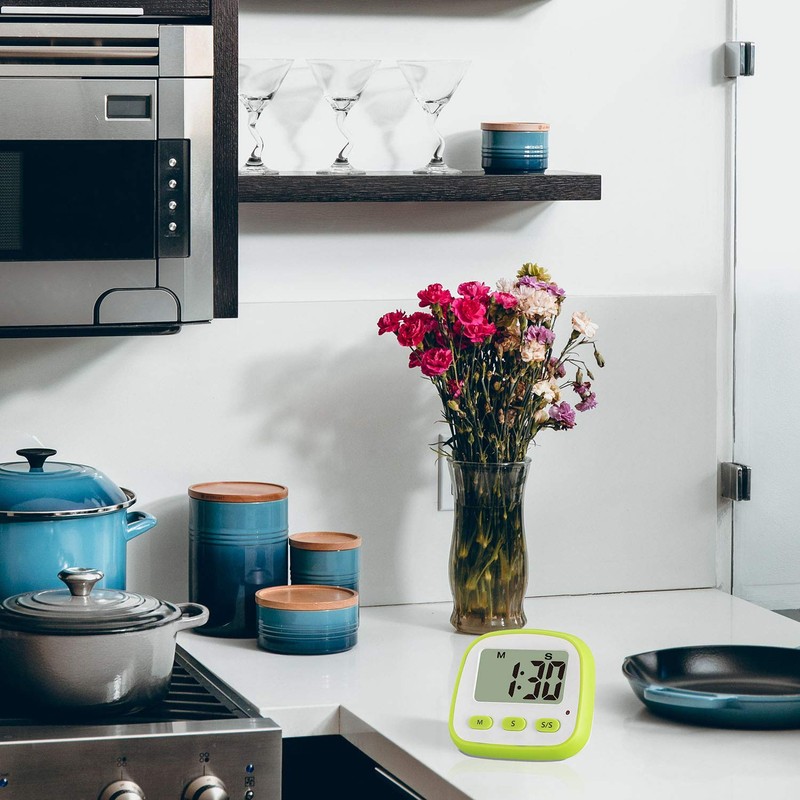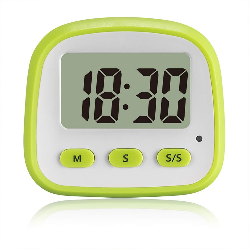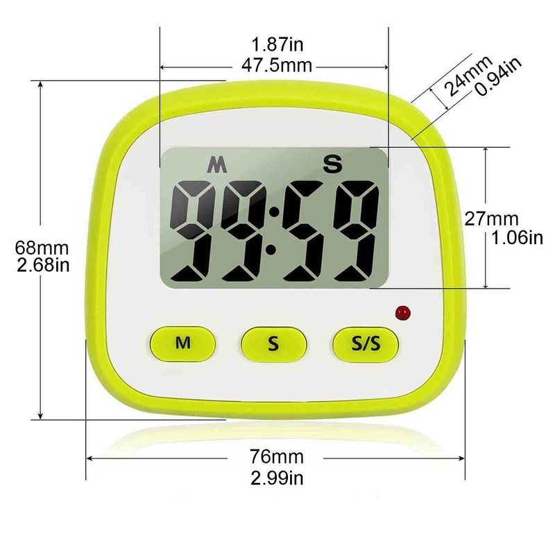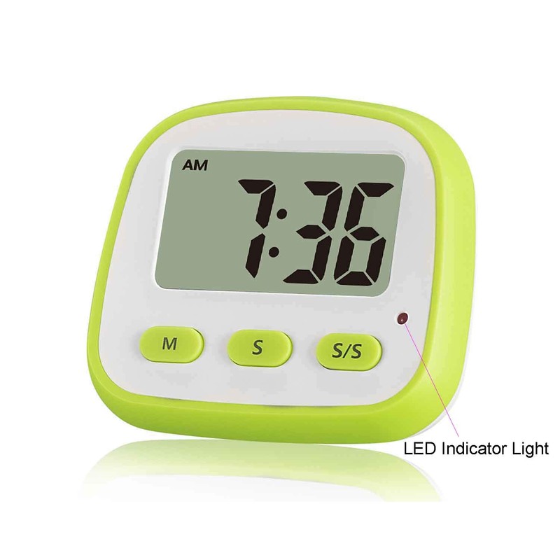 • Bold Fonts Display & Loud Alarm - Outstanding features as a handy kitchen timer: Nice LCD Display; Big Digits (bold fonts); Loud Beeper Alarm (loud & clear but not deafening). – Big digits for you to check the display on LCD easier; Loud Beeper Alarm will always clearly remind you it is time to something now without missing; matte white and green exterior textures well with your kitchen, bedroom, office, gym, etc.