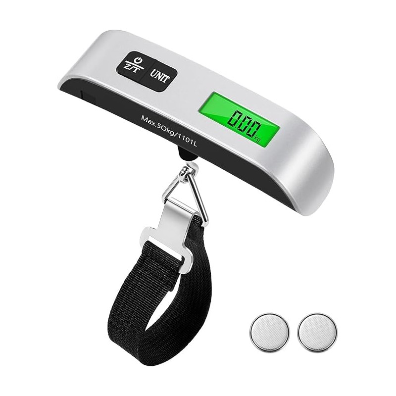 Digital Luggage Scale with Temperature Sensor – 110lb/50kg Capacity, Backlit LCD, Tare Function, Lightweight & Portable - Black