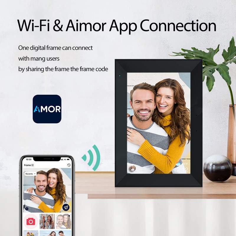 Digital Photo Frame 10.1 Inch WiFi Picture IPS HD Touch Screen Smart Cloud Photo Frame with 16GB Storage, Auto-Rotate, Easy Setup to Share Photos or Videos Remotely via AiMOR APP (Black)