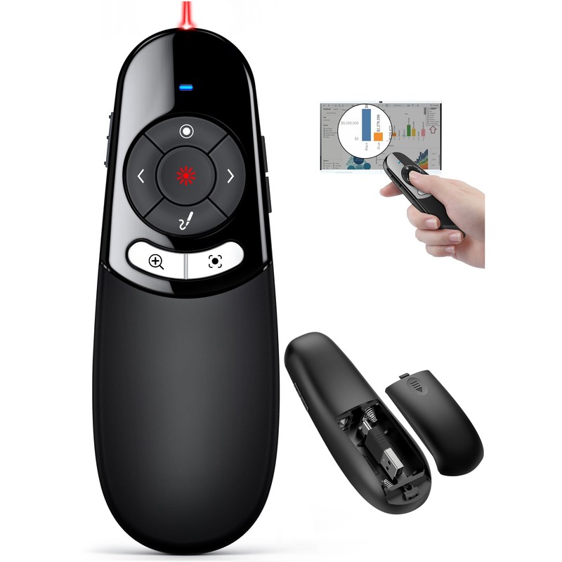 - Long-distance control: the presentation remote control is equipped with a red light that is clearly visible from most backgrounds. To attract the attention of the audience, the red light is projected in key areas of the slides at a distance of 200 m, with a wireless control range of up to 30 m, the entire venue is covered and you can stand in any corner and control it flexibly remote control.
