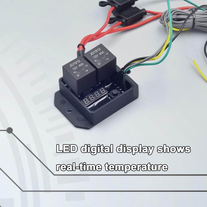 Digital Radiator Fan Controller Switch 12V/24V Kit with Adjustable Temperature Range 104-230°F, LED Display, Dual Fan Relay Replacement 0444
