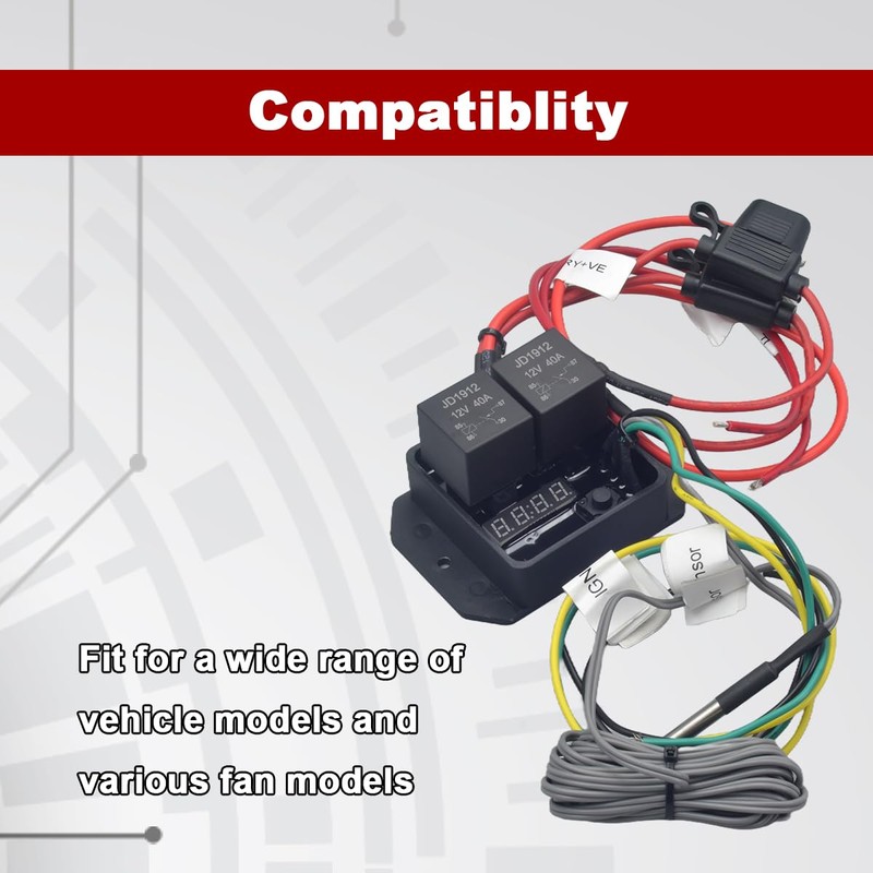 This fan controller is a versatile upgrade or replacement for existing ones, compatible with both 12V and 24V electrical systems. It offers precision temperature control with an adjustable range from 104°F to 230°F (40°C to 110°C) and a real - time digital display. With dual fan management, it can operate one or two fans, and Fan 2 starts with a 10 - second delay to reduce current surge, enhance cooling performance and prevent circuit overload. Installation is smart and easy, thanks to labeled, color - coded wiring, detailed instructions, built - in support for A/C override and manual toggle switch integration, as well as an upgraded sensor cable for better accuracy and durability. The controller is built with high - quality, water - resistant materials to withstand dust, heat and vibration, and serves as a direct replacement for # 0444 / DC0444 / DC - 0444.