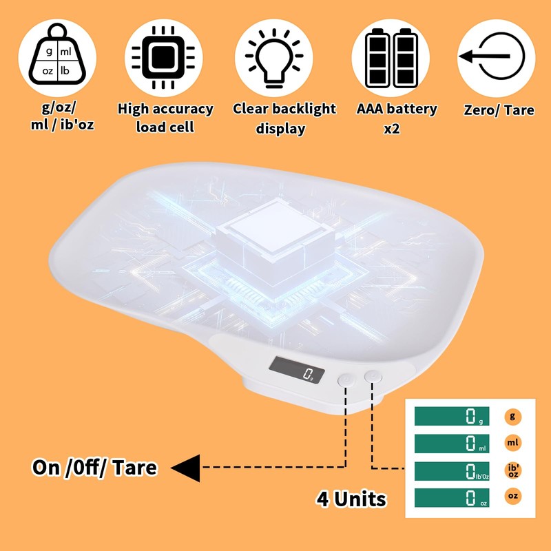 - Versatile measurement: Our digital pet scale provides precise measurement with a capacity of up to 15 kg and a minimum division of 1 g. It is ideal for measuring small animals such as newborn kittens, puppies, hamsters and birds, and also allows easy switching between g/ml/oz/lb.oz.