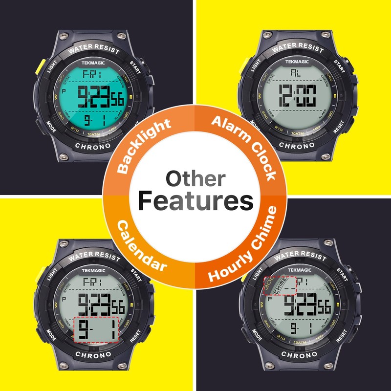 Digital Sports Wristwatch for Swimming and Diving 10 ATM Waterproof with Functions of Alarm Clock, Stopwatch, Chronograph, Countdown, Timer, Dual Time and Calendar, 12 and 24 Hour Format Switchable