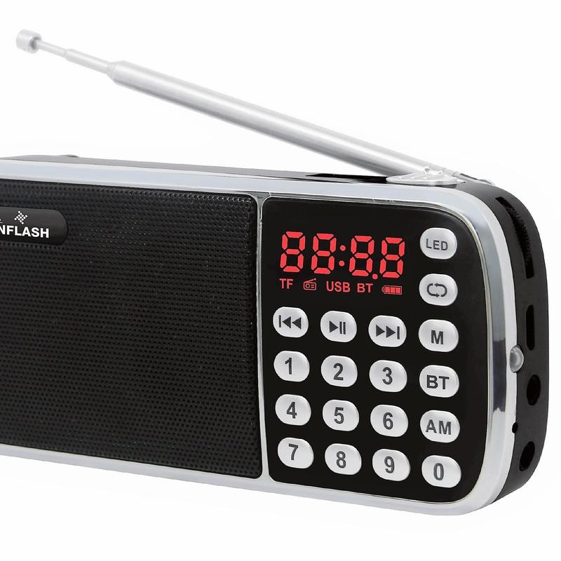 Digital Sunflash Z-135 Rechargeable Mini AM/FM Radio +Wireless Bluetooth +USB/SD/AUX Audio Compact Speaker - Color: BLACK