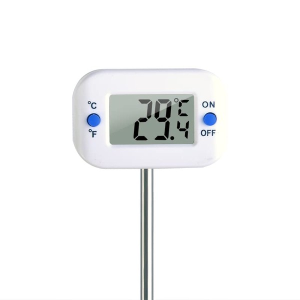 - 6' inch metal probe for deep immersion. LCD display: The large digital display screen is easy to read, making it convenient to check the temperature at a glance.