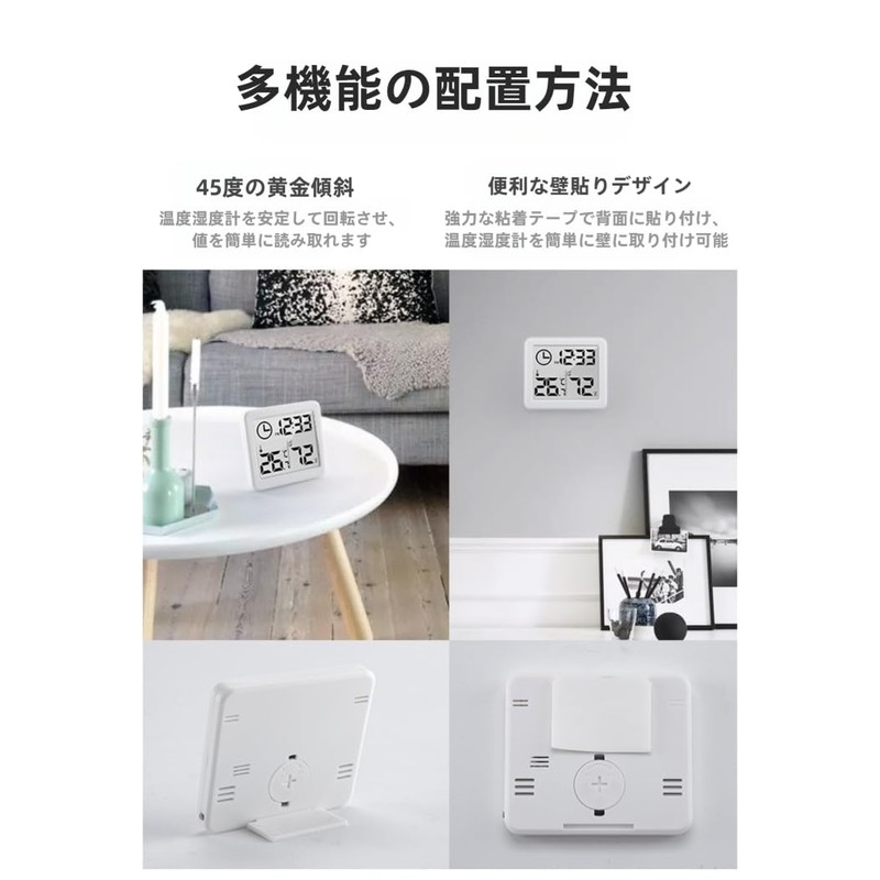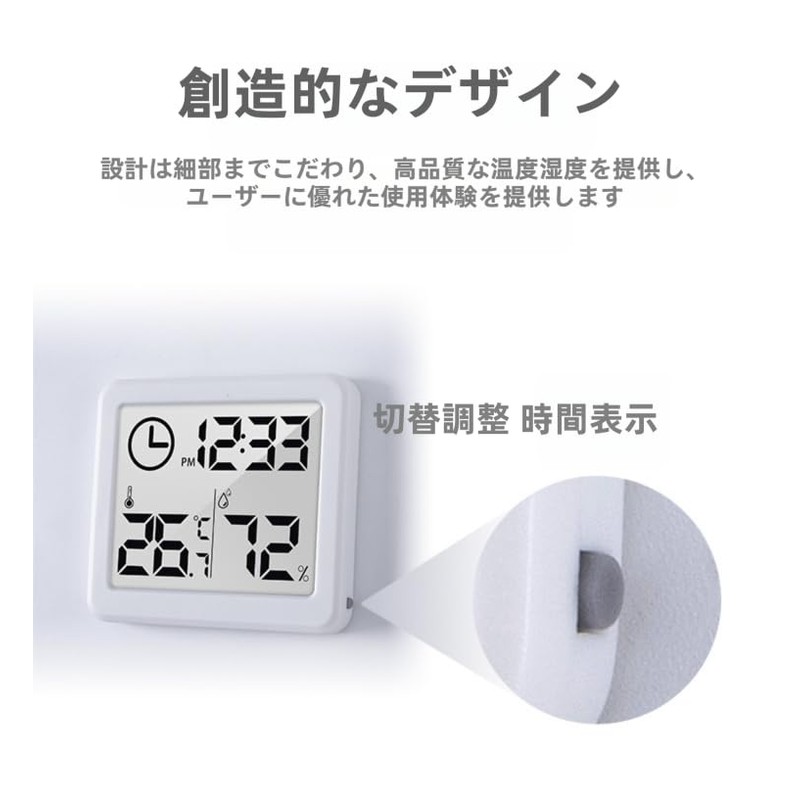 (Small but high performance) This 1 piece is both temperature and humidity. Ideal for summer heatstroke prevention, winter infection prevention, and biological management of children, elderly and pets. (Can be installed in any place) Simply place it on a table or attach it to a wall with double-sided tape to instantly transform it into a wall. The simple design does not interfere with the layout of the room. 【Suitable for a variety of rooms】It can be used in various places such as bedroom, bathroom, living room, dining room, kitchen