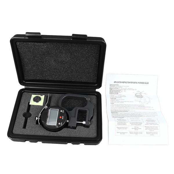 1、Accurate Measurement: Measure thickness with a resolution of 0.01mm, ensuring accuracy in industrial applications. 2、Durable Aluminum Alloy: Made of sturdy aluminum alloy, this gauge is built to withstand tough industrial environments. 3、Easy to Read LCD Screen: The clear LCD screen provides a convenient readout, making it effortless to obtain accurate measurements. 4、Convenient Battery Power: Powered by a built in CR2032 lithium Mn battery, ensuring reliable and long lasting performance. 5、Suitable Range: Can be used for measuring the thickness or date of paper, leather, jewelry, metal sheet and other things.