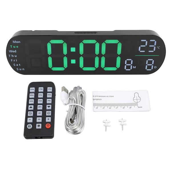 Digital Wall Clock Large Display with Remote Control Auto Brightness LED 12 24H Mode Decor Gift Green