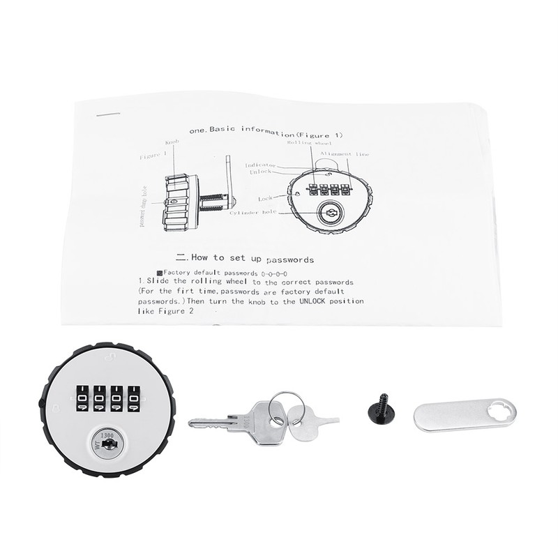 1、Made of zinc alloy material, strong, precision, safe and durable. 2、The installation thickness is 20mm is suitable for metal cabinets, 26mm is suitable for wooden cabinets. 3、The lock can be set 100 kinds of number combination. The original dial set to 0-0-0-0. 4、Help you solve the trouble that can't find the key and open the cabinets. 5、Ideal for tool boxes, cabinets, drawers, mail box, school lockers or any where keys are not suitable.
