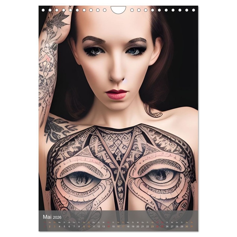 Digitale Tattoo-Schönheiten - Computerträume aus der KI (Wandkalender 2026 DIN A4 hoch), CALVENDO Monatskalender