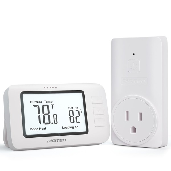 DIGITEN Wireless Thermostat WTC100 Pro Temperature Controller for Cooling & Heating, Remote Controlled Outlet, Easy-to-Use and Non-Programmable Plug in Thermostats for Home
