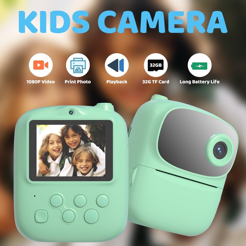DIGITHINK Kids Instant Print Camera 2025, 32GB Memory, Dual Lens with 2.4-Inch Screen and 1080p HD, Nice Gift for Boys and Girls Ages 4-13, Ideal for Toddlers and Teenagers