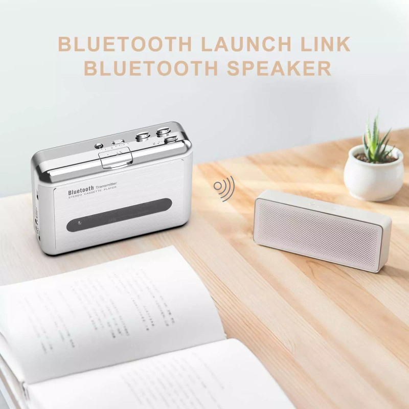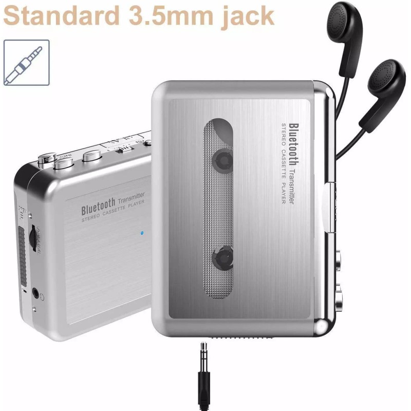 The personal cassette player looks the part with its retro silver casing and comes complete with earphones for your private listening. And the 3.5mm Headphone socket allows you to plug in your own headphones for a fuller sound if you prefer. With bluetooth function, can transmit the music to other bluetooth receivers and let everyone enjoy those retro cassette sounds.