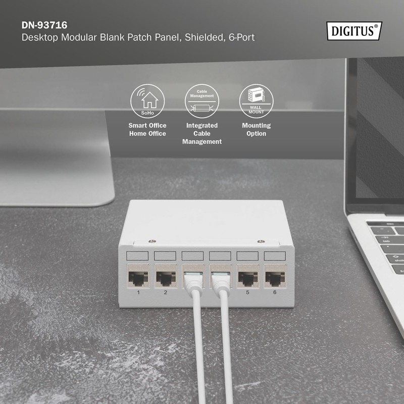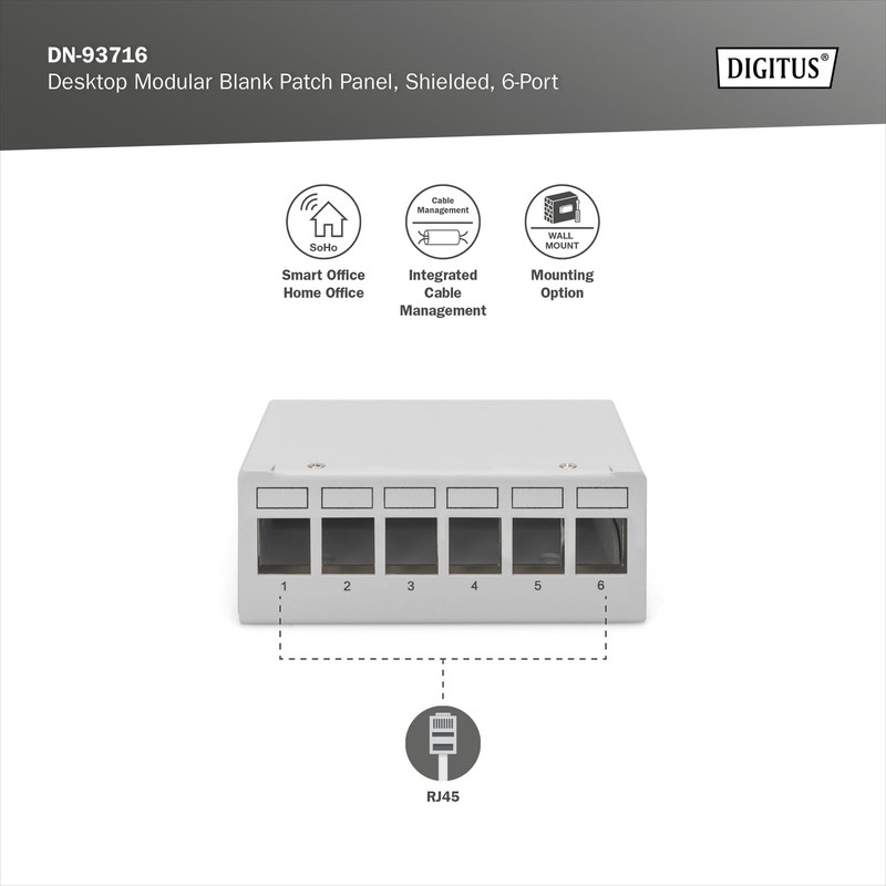 Digitus Desktop Modular Patch Panel, Shielded, 6-Port, Light Grey