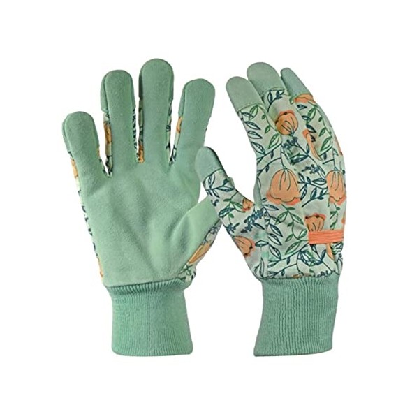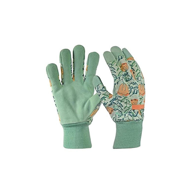 Digz Women's Leather Palm Garden Gloves with Knit Wrist, Coral Floral Pattern, Medium