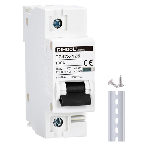DIHOOL AC/DC Miniature Circuit Breaker,Single Pole 100 Amp,12V-400V,Non Polarized,Solar Disconnect Switch,DIN Rail Mount