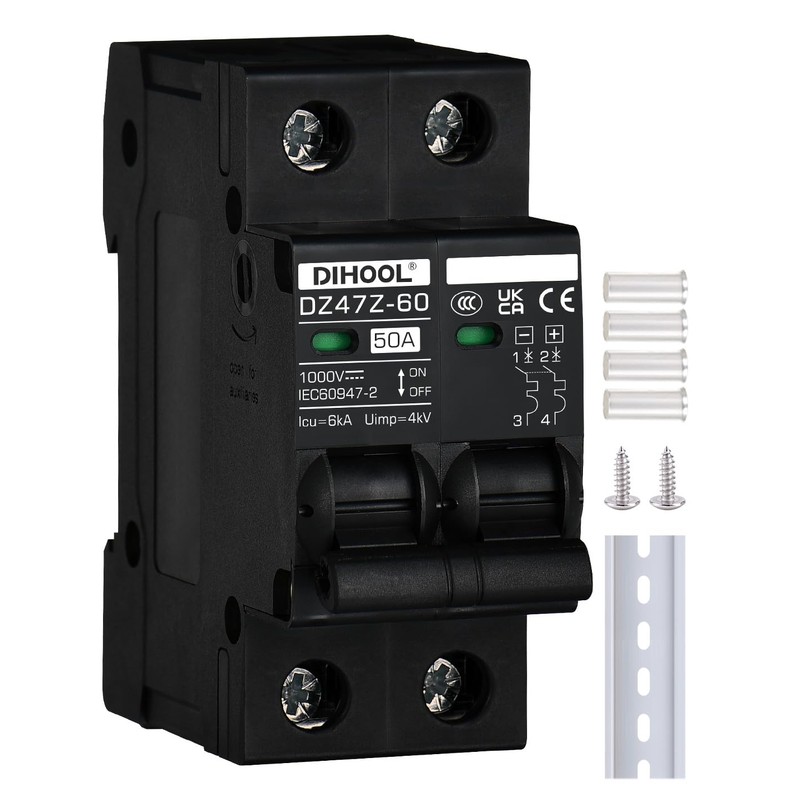 DIHOOL DC Circuit Breaker 2 Pole DC 12-1000V 50A Miniature Circuit Breaker, For Solar Panel Controller, For Solar Panel In Solar Power System