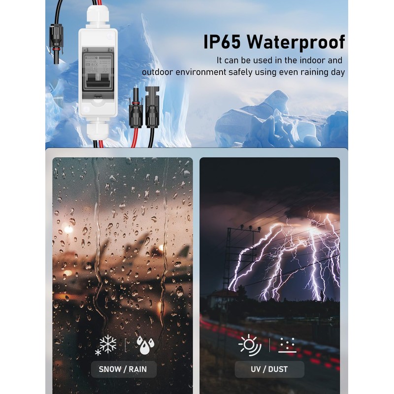- With IP65 waterproof breaker box,Suitable for outdoor installation, such as connecting solar energy, car charging posts, etc.the transparent cover also make it easy to check the status of the circuit breaker.