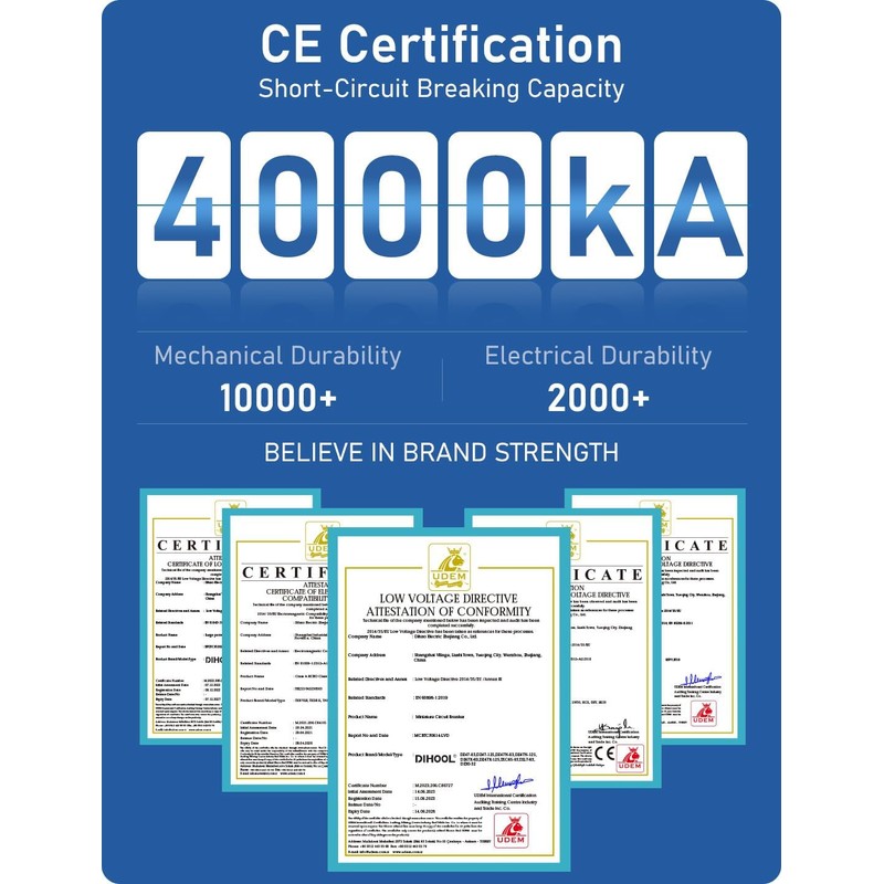 - Multiple protection: isolation, short circuit protection, and overload protection,C-curve trip,it can be used for 12V-400V DC or AC systems.